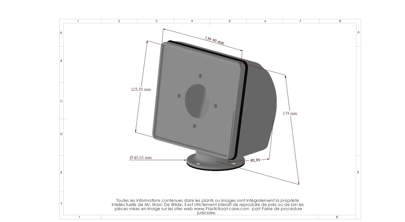 Nav-Pod Seaview 360° peut être installé sur des mains courantes standards non incurvées d'un diamètre de 25 mm à 22 mm ou sur une surface plate avec son pied de table. Grâce à sa fixation, il pivote à 360° et votre boîtier sera fixé correctement. La configuration de ce POD vous permet de passer les câbles des instruments ou appareils en interne, à travers le POD et en passant par le tube. Fabriqués en plastique ABS blanc résistant aux UV. POD de PlasticBoat-case ne se détérioreront pas avec le temps complique de l’ocean.