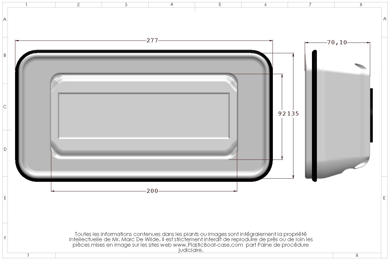 Taille de l'écran supporté : 200 mm / 79 mm (maximum) la taille peux être modifié sur simple demande.